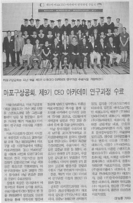 ¸¶Æ÷±¸»ó°øÈ¸, Á¦9±â CEO ¾ÆÄ«µ¥¹Ì ¿¬±¸°úÁ¤ ¼ö·á ¼ºÎ½Å¹® 2013.06.28~07.05