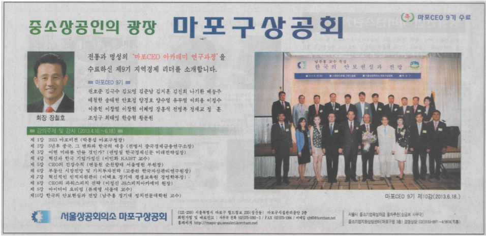 ¸¶Æ÷±¸»ó°øÈ¸, Á¦9±â CEO ¾ÆÄ«µ¥¹Ì ¿¬±¸°úÁ¤ ¼ö·á ¼ºÎ½Å¹® 2013.06.28~07.05