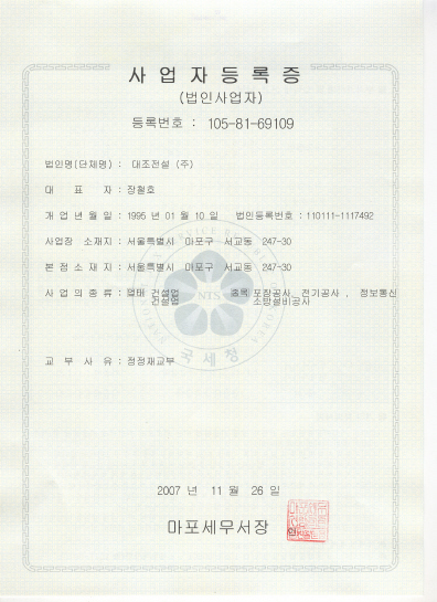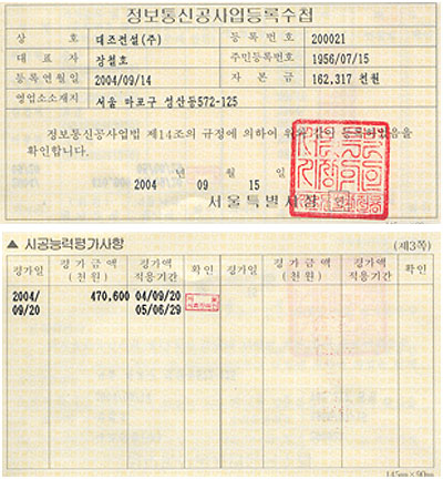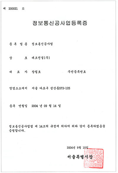 Á¤º¸Åë½Å°ø»ç¾÷µî·ÏÁõ