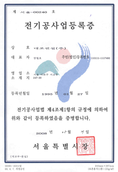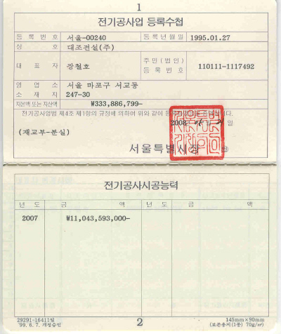 Àü±â°ø»ç¾÷µî·ÏÁõ